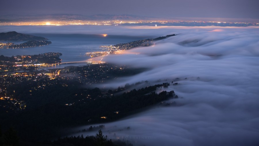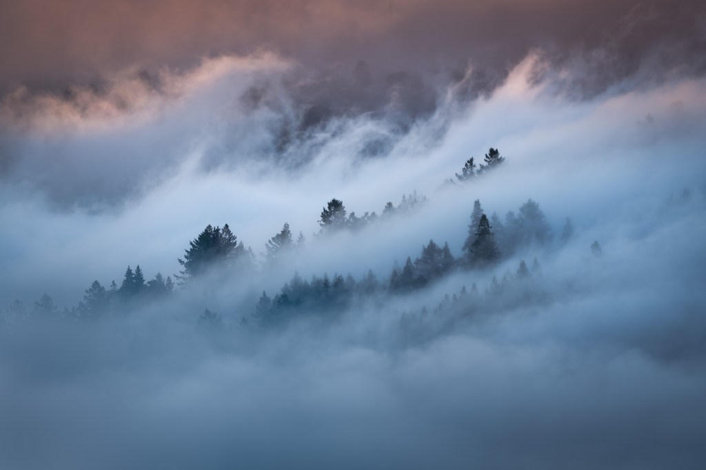 San Francisco photographer Michael Shainblum captures this in his beautiful work. One of his collections is called A Symphony of Fog. He writes: “San Francisco is famous for its foggy climate. The fog in the bay area appears to act independently, occasionally disrupting sunny days and darkening the sky. People have mixed feelings about the fog. Some find it inconvenient and depressing, while others embrace its unpredictable nature.