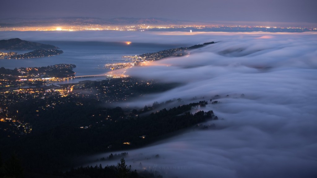 Regardless of ground-level opinions, the view from above reveals the fog’s stunning beauty. This collection pays homage to this remarkable fog and showcases its magnificent allure. The fog has essentially become a living part of San Francisco’s identity.”